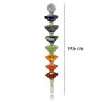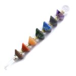 The 7 Chakra Pyramid Healing Wand is designed to balance and align the body’s energy centers, also known as chakras. This wand consists of seven different crystals, each representing a specific chakra, strategically placed within a pyramid-shaped wand made of clear quartz.