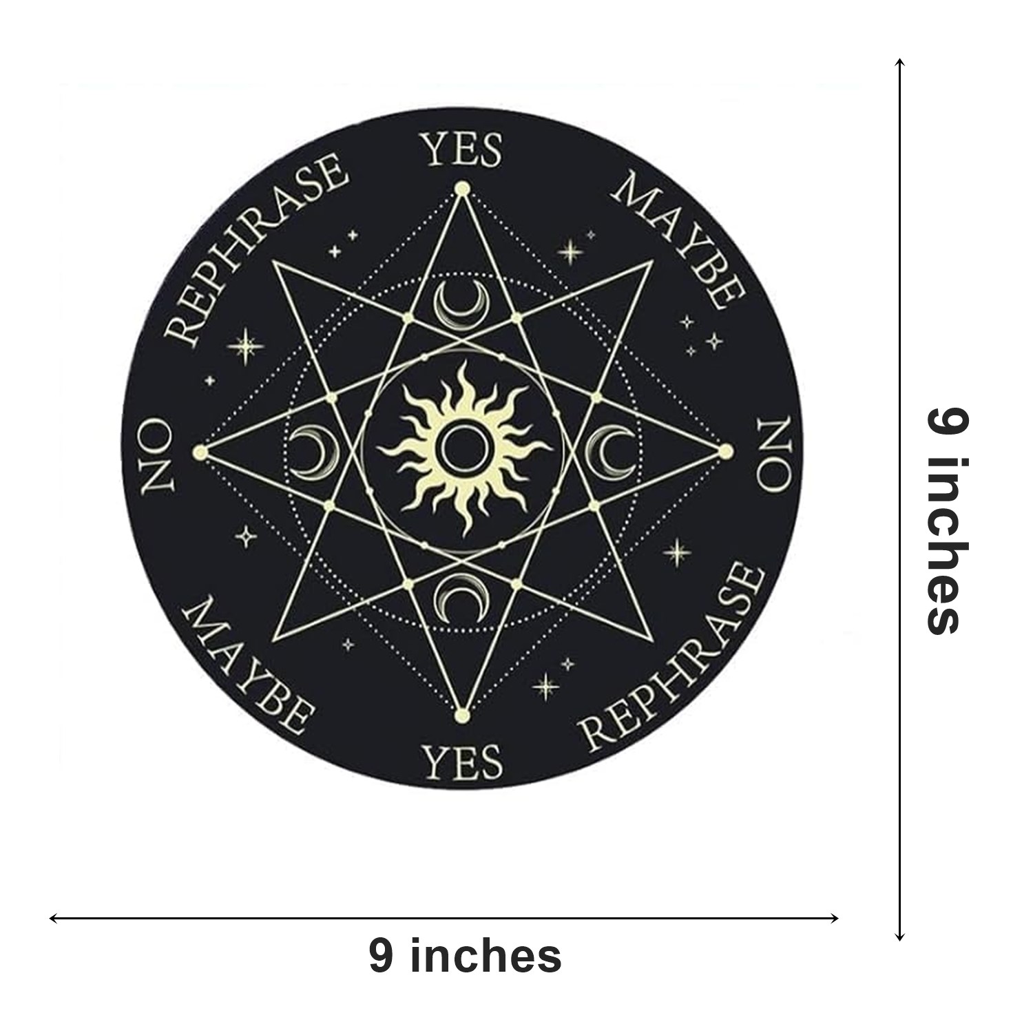 Unlock the mysteries of the spiritual realm with our Acrylic Black Sun Dowsing Board, a beautifully crafted tool designed to enhance your divination and dowsing practices. Made from high-quality acrylic material, this durable and lightweight board is perfect for both beginners and seasoned practitioners. Its sleek black finish offers clear visibility for the markings, ensuring precision in every session.
