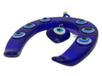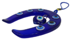 Blue Evil eye Hanging Horse Shoe is a dual effect vastu and feng shui remedy. It is a great remedy for protection from evil eye and can be displayed anywhere in the home, office or can be hung on car rear view mirror. It is made up of horse shoe design because in hinduism horse shoe is displayed on the front door for protection from negative energies, bad luck and shadi dosha. This blue evil eye hanging horse shoe is made of high quality plastic which is highly durable. It look pretty beautiful, attractive and also a great gifting item.