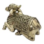 Each statue is meticulously handcrafted by skilled artisans, ensuring that the devotion and spiritual essence of Nandi are captured in its posture and form. The durable brass material ensures longevity, retaining its golden luster and powerful positive vibrations for years to come.
