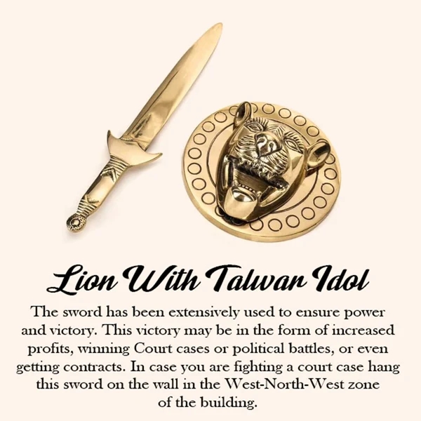 If you’re entangled in a court case, hanging the Brass Lion Sword in the West-North-West (WNW) zone of your home or office works as a Vastu remedy to turn the outcome in your favor. It also ensures you successfully secure bids and contracts, enhancing your professional success. - Increased Sales & Recognition (South Zone):