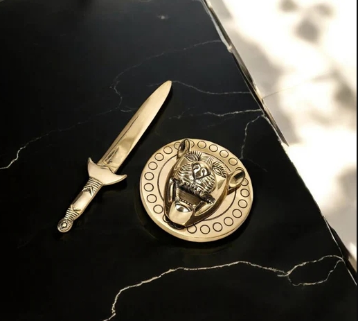 The Brass Lion Face with Sword isn’t just about Vastu—it’s also a stunning piece of art. With its antique finish and regal design, it makes for an elegant home decor item. It can be a thoughtful gift for loved ones who appreciate spiritual remedies or antique home accessories. Whether it’s for good luck or adding a touch of grandeur, this sword is perfect for gifting on special occasions.