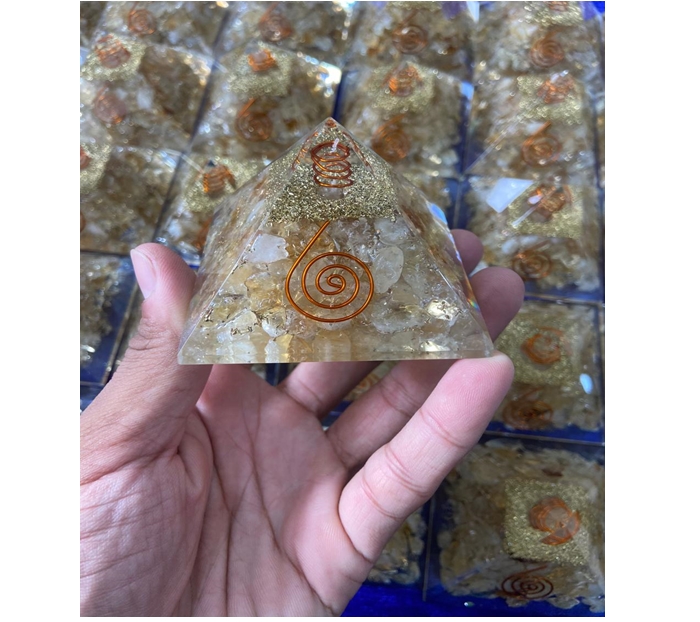 About the Product: Our Citrine Orgone Pyramid is a carefully handcrafted masterpiece, featuring genuine citrine crystals and a blend of organic and inorganic materials. The citrine crystals radiate warm, golden energy, while the orgone matrix enhances the crystal’s power, making it a perfect addition to your home or office.