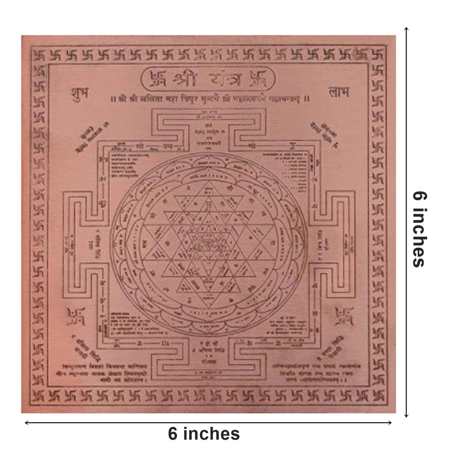 Unleash the power of the cosmos with our exquisite Copper Shri Yantra. This geometric marvel, meticulously crafted from pure copper in both 4-inch and 6-inch sizes, represents the union of divine feminine and masculine energies.