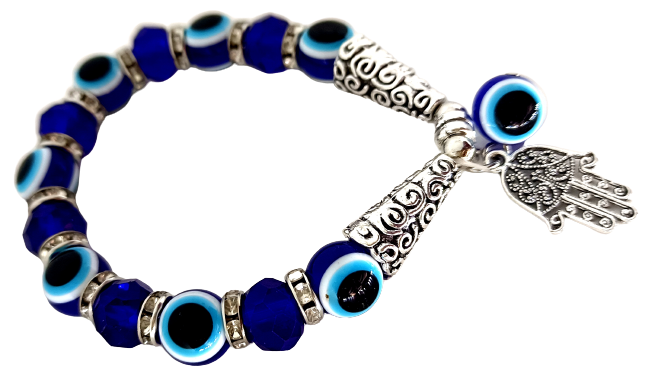 Evil Eye Bracelet with Hamsa hand is a dual beneficial and very attractive bracelet for both men and women. Evil eye bracelet protects the wearer from bad effects of evil eye/nazar badha whereas the Hamsa Hand included in this bracelet is a universal sign of protection, power and strength that dates back to ancient Mesopotamia. Known as the Hand of Fatima in Islam and Hand of Miriam in Judaism, it’s believed to protect against against the evil eye and and all negative energies.