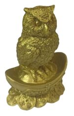 - Feng Shui owl statue on lucky Chinese coins resembles double effectiveness of owl and coins and it not only looks splendid as a home décor item but also brings about prosperity vibes owing to yellowish golden color.
