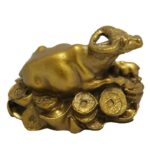 Fengshui wealth Cow (fengshui wish fulfilling cow) statue in Feng Shui symbolizes good luck, growth and fortunes. This fengshui wealth cow is made of resin with shiny golden color painted on it which looks so good to see. India India, nepal and several countries, cow is considered as holy animal and hold special religious imporance also. This symboliz statue of wealth chow is sitting on symbolic bed of chinese fengshui coins which gives double effect because chines coins itself symbolizes wealth and prosperity.