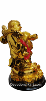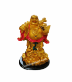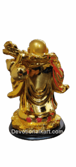 Buy this popular Laughing Buddha Statue holding a big ingot in hand which symbolizes overall luck, wealth, and happiness for whole family members and staff at the workplace. This statue is shown standing on feng shui coins and mini ingots with a big ingot holding in hand. This is a type of laughing buddha statue that can be placed in both home and office. This statue is also shown carrying a Wo Lu which depicts the good health and well-being of the whole family.