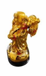 Laughing Buddha with a Sack symbolizes that he collects people’s grief and suffering and puts them in his sack while the other sack on his shoulder symbolizes delivery of happiness, luck, wealth, and fortune. This Laughing Buddha with a sack is made with high-quality poly-resin material painted with the best quality golden color.