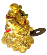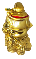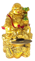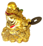 Buy Laughing Buddha holding lucky stick, sitting on three legged money toad and bed of wealth with a free brass chinese feng shui coin in the mouth of toad/frog is a perfect combination for attracting wealth and prosperity into home and office. This is a perfect laughing buddha which needs less space and has same effect as big laughing buddha. It is perfect for personal and corporate gifting.