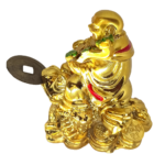 Buy Laughing Buddha holding lucky stick, sitting on three legged money toad and bed of wealth with a free brass chinese feng shui coin in the mouth of toad/frog is a perfect combination for attracting wealth and prosperity into home and office. This is a perfect laughing buddha which needs less space and has same effect as big laughing buddha. It is perfect for personal and corporate gifting.