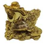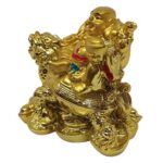 This Golden Laughing Buddha sitting on Dragon Turtle is displayed in the Home and Office for inviting good luck, fame, Wealth Luck and Long Life. The dragon turtle on which the laughing buddha is shown sitting protects from enemies and bad luck whereas the laughing buddha is holding an ingot that invites good luck and wealth.