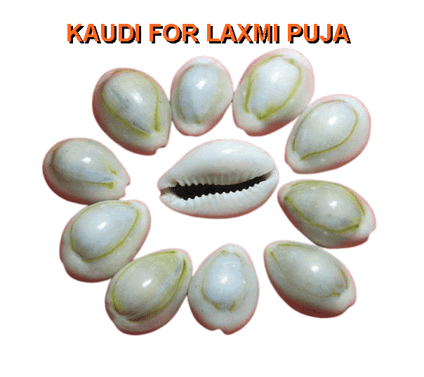 The Kaudi (कौड़ी) is a mini conch of pale white color obtained from the sea. Kaudi is considered a symbol of Goddess Lakshmi. It is considered as a symbol of Wealth, Auspiciousness, and well being in Hinduism. It is widely used in Hindu rituals, especially for rituals performed for pleasing Goddess Lakshmi.