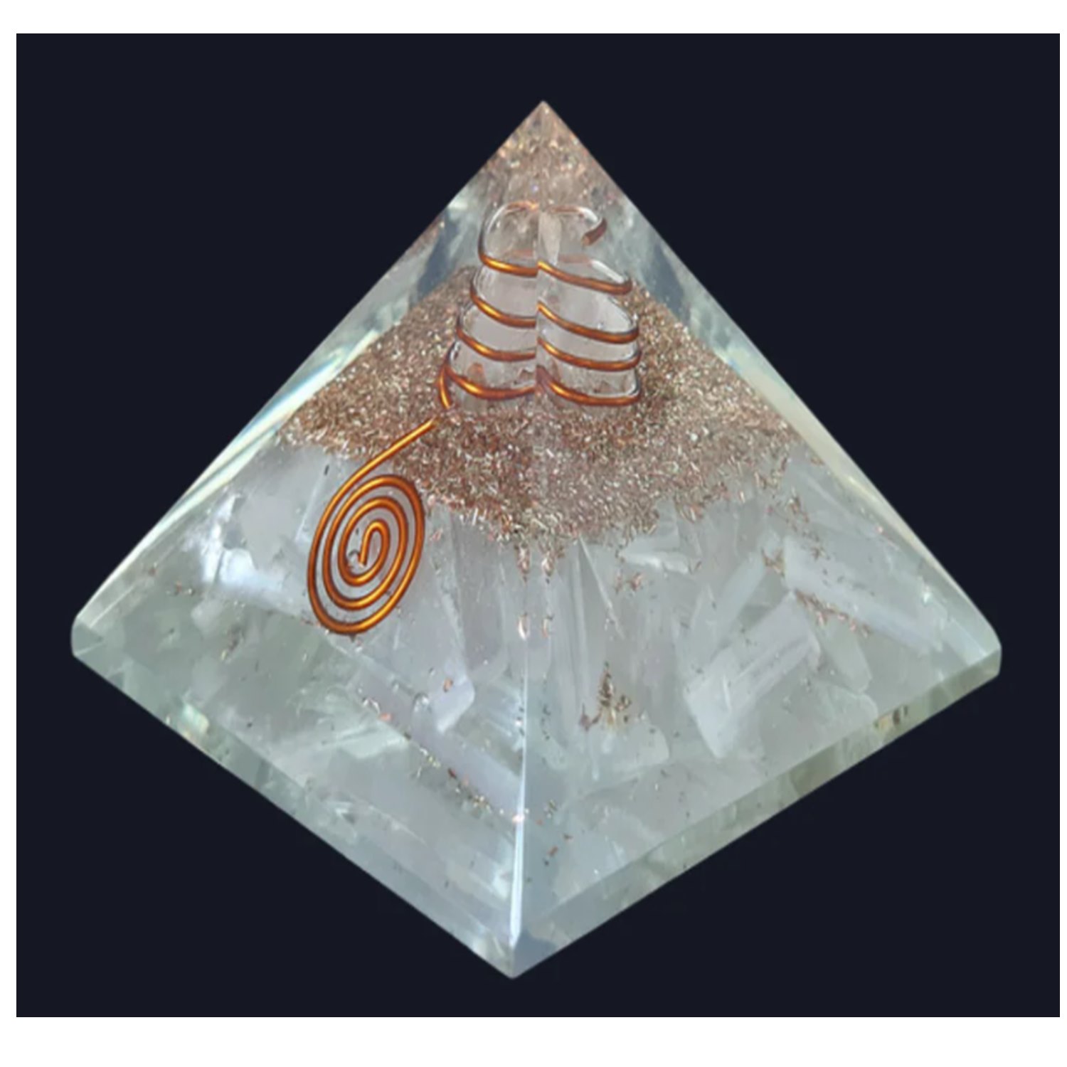 The Orgonite Selenite Pyramid is a powerful energy amplifier and cleanser designed to harmonize your surroundings. Crafted with natural selenite crystals and infused with the orgone energy matrix, this pyramid is an essential tool for balancing energy, purifying spaces, and promoting mental clarity. Its elegant design makes it not only a spiritual companion but also a beautiful decor piece for your home or office.