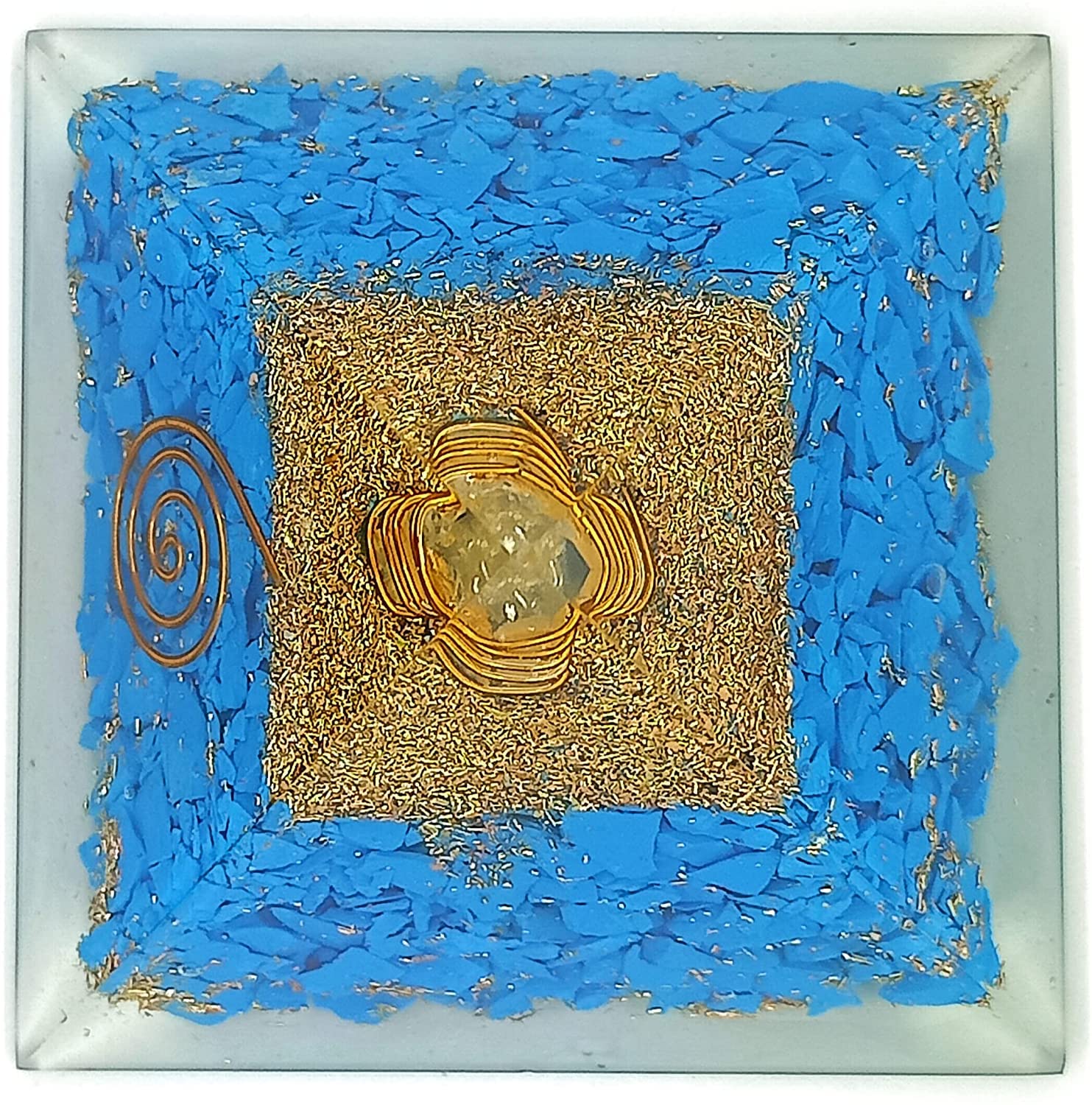 Experience serenity and balance in your life with the Orgone Turquoise Pyramid, a powerful healing tool combining the calming energy of turquoise stone with the transformative properties of an orgone pyramid. This stunning piece is designed to attract peace, promote emotional healing, and protect against negative energy, making it a must-have for your personal or professional space.