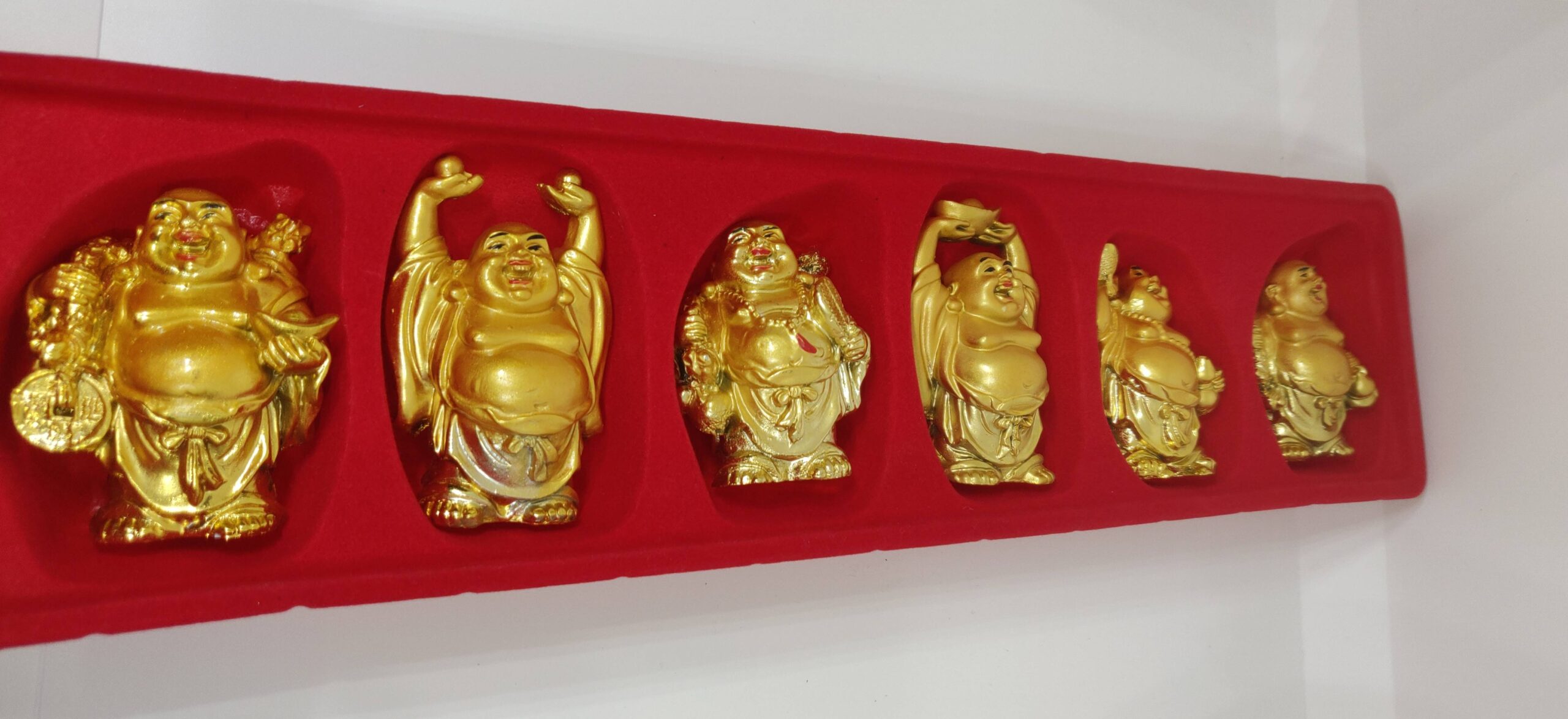 Buy a set of 6 Little Smiling Golden Laughing Buddhas that may be used for both gifting and home décor reasons. It is believed that putting laughing Buddha sculptures in your house can bring you money, prosperity, success, and financial advantages according to Feng Shui principles.