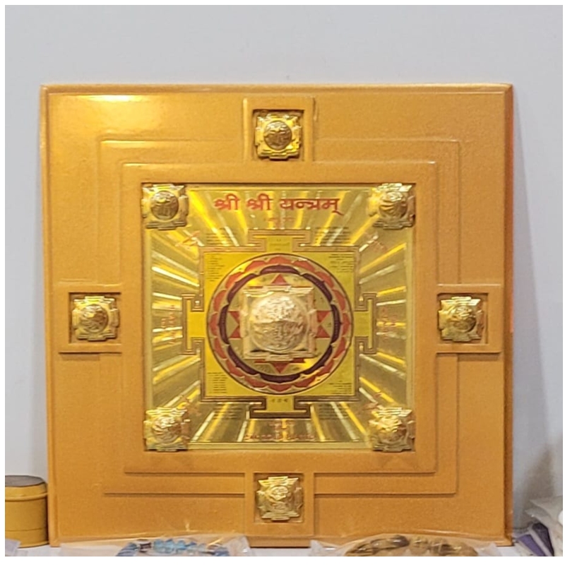 - Eight smaller brass Shri Yantras gracefully adorning the chowki, radiating prosperity in all directions.