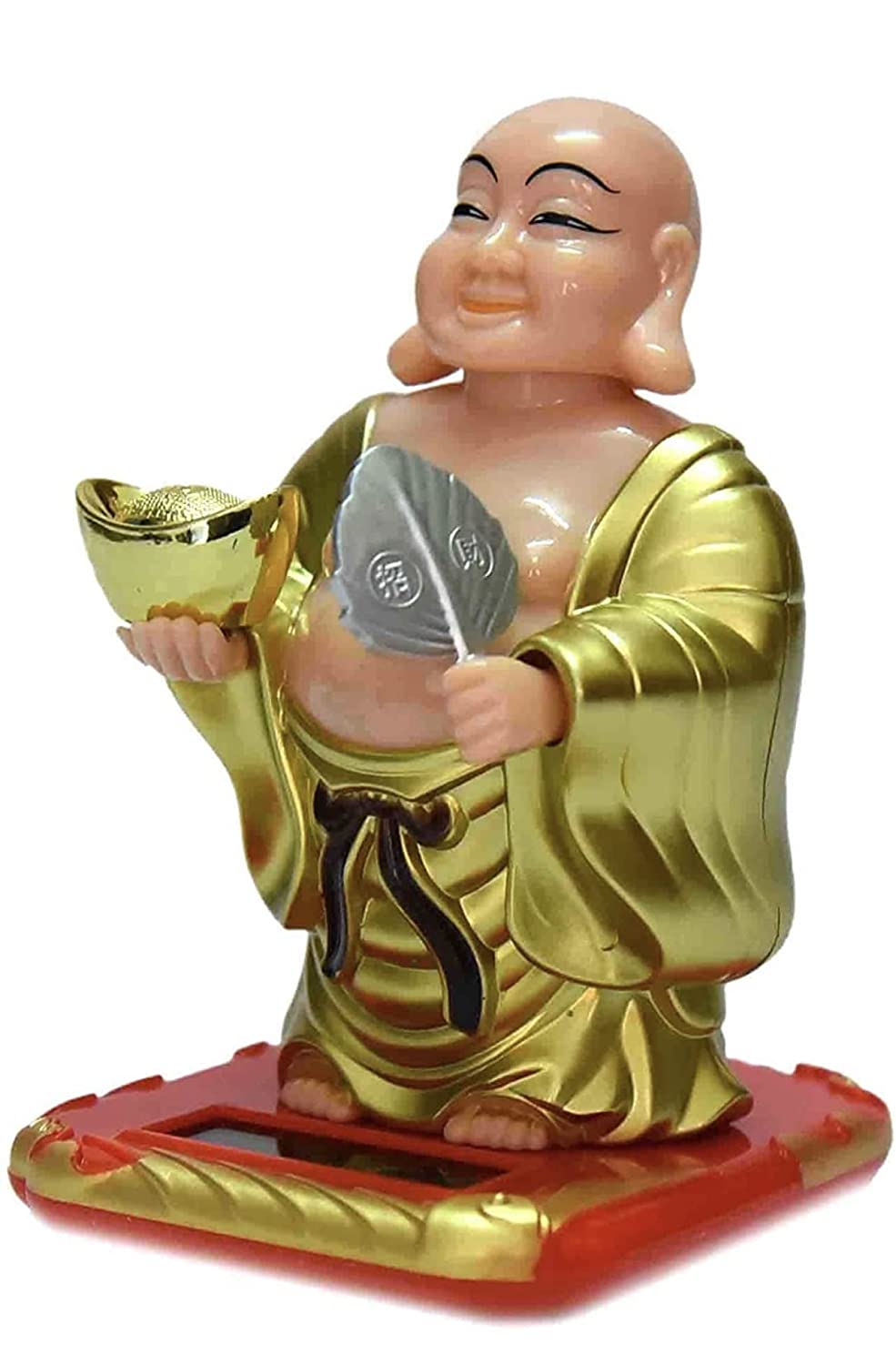 If you are trying to find a feng shui decorative item for your car then Feng Shui Solar Happy Man Laughing Buddha is one of the best choices for you. It works with solar panel and also batteries. It will keep moving head and waving fan until a little sunlight is there, afterward in the evening it will automatically start working on battery.