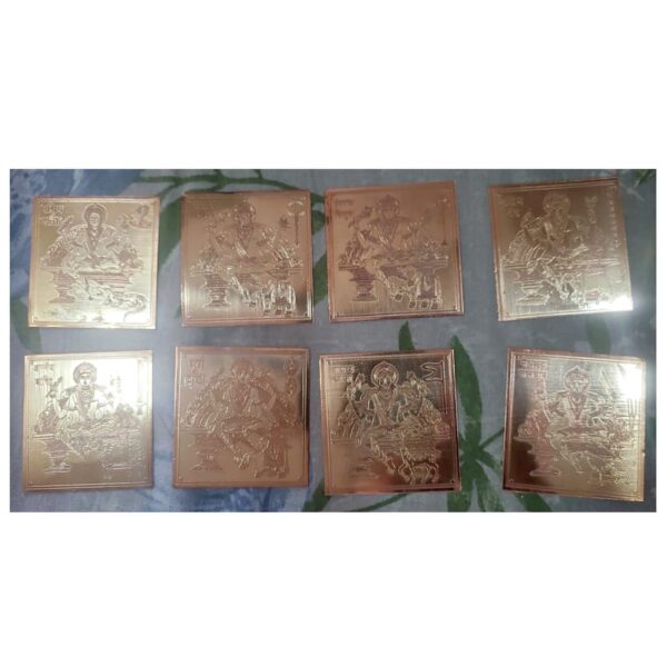 The Vastu Copper Ashta Dikpalas represents the eight guardians of the directions in Hindu mythology: Indra, Agni, Yama, Nirrti, Varuna, Vayu, Kubera, and Ishana. These directional deities are believed to protect the eight cardinal points and keep negative energies at bay. This copper plate also includes sacred Devta and Shastra symbols, which amplify the protective and energizing effects. By placing this item in strategic locations, you can harness its powerful Vastu benefits to enhance peace, prosperity, and positive energy in your surroundings.