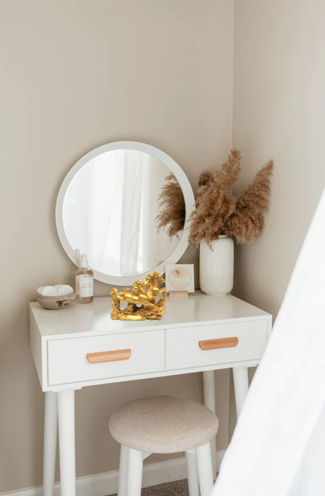 A Vastu Golden Running Horse Pair is considered as a symbol of good fortune, Wealth, Stability, Control, Vitality, and Nobility. The ideal place to keep this horse is in the south west corner of the room or office to gain mobility and to bring the desired respect, fame, and popularity to life.